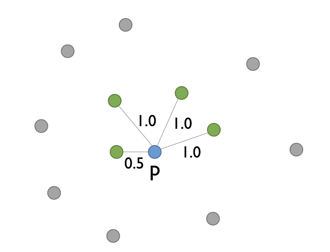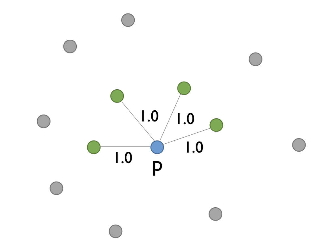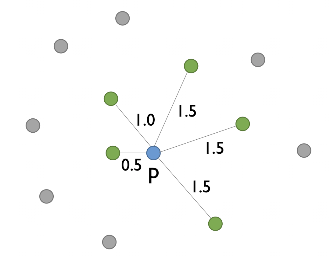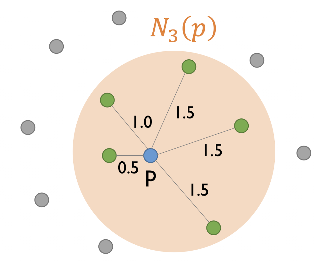 위 그림을 보면 3-distance($p)$는 1.5인 것을 알 수 있고, 수식에 따라 $N_{3}(p)$는 총 5개인 것을 확인할 수 있다.