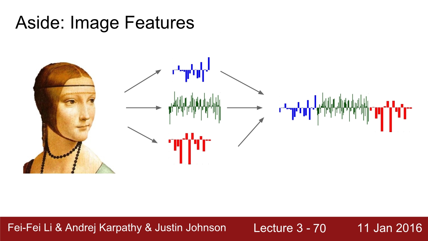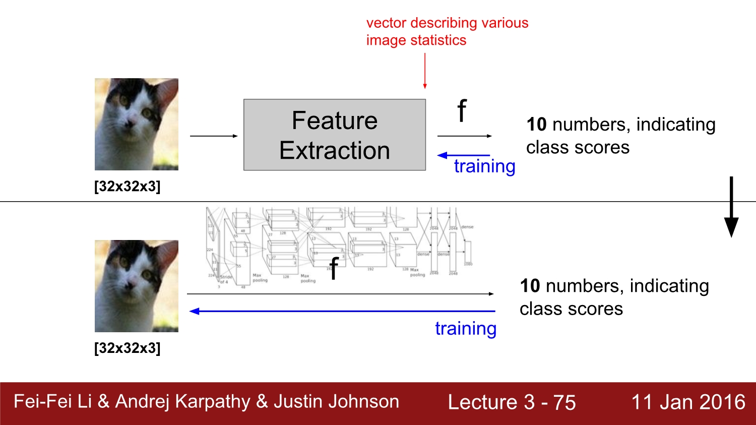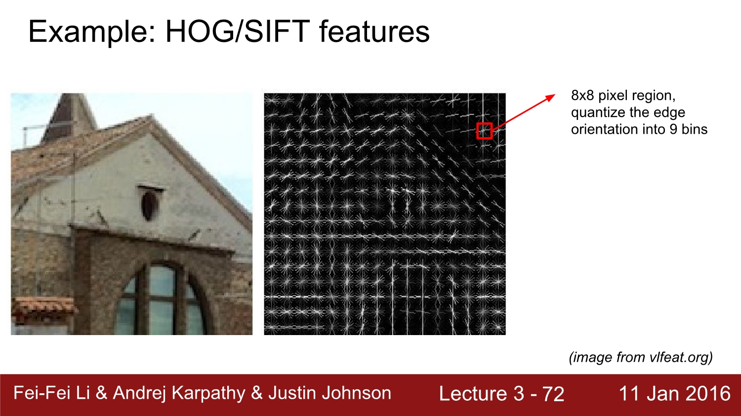 과거에 image의 feature를 찾을 때는 각 pixel의 RGB 값을 뽑고 이 값들을 hist 화하여 linear classifier를 진행하였다고 한다.