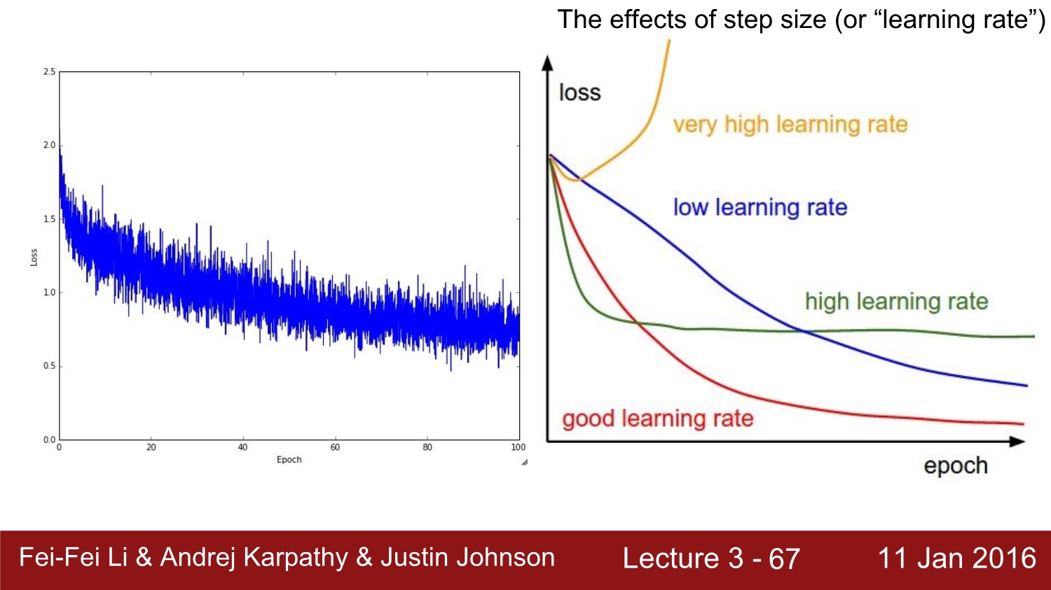 그리고 오른쪽은 step size 즉 learning rate의 설정인데 이는 초반에는 약간 큰 learning rate를 사용하다가 점점 값을 낮추는 방법으로 설정한다고 한다.