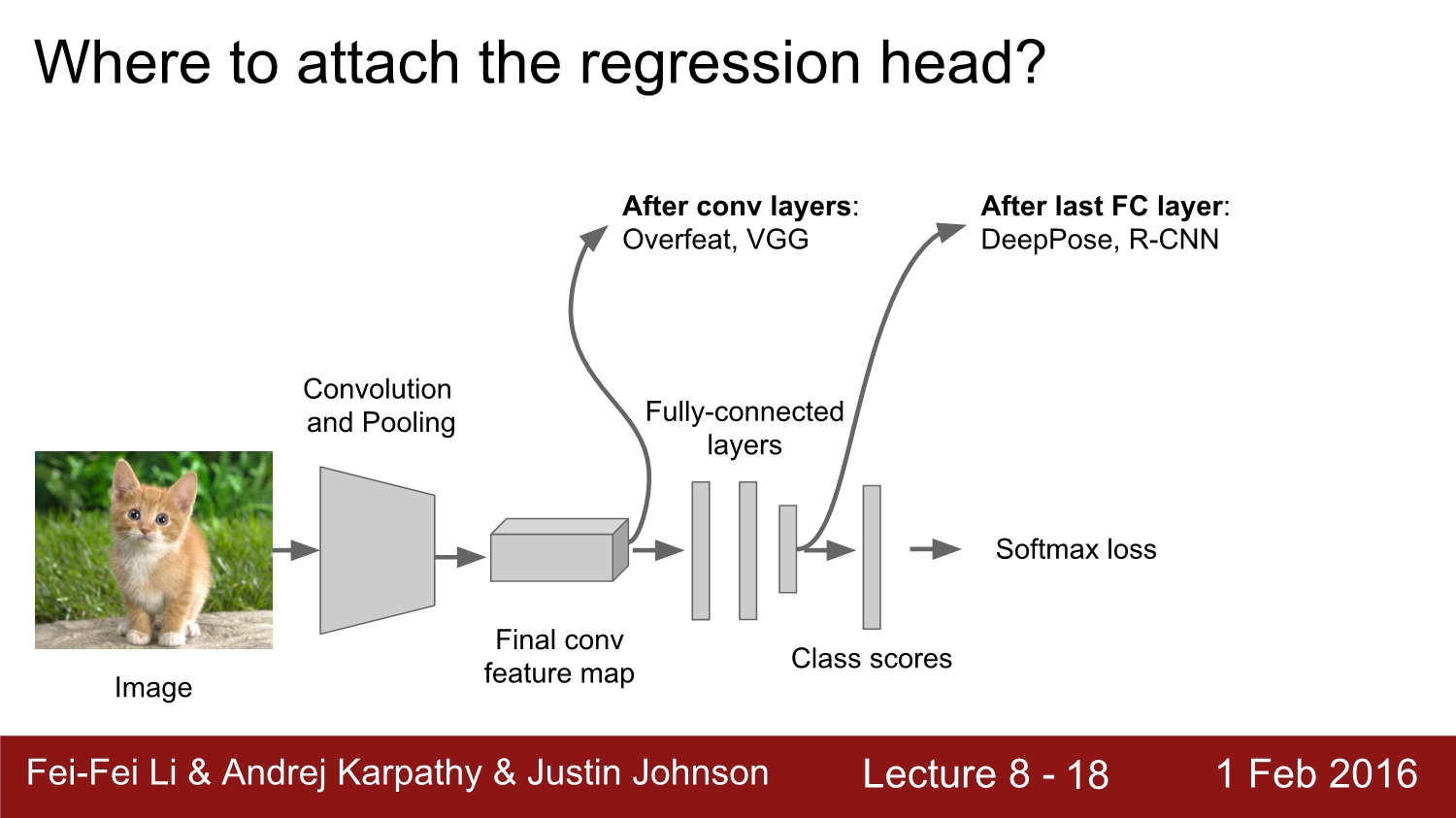 regression head는 마지막 conv layer 뒤에만 붙어주면 된다. fully connected layer에도 붙이는 경우가 있다. 둘 다 정상적으로 작동한다고 한다.