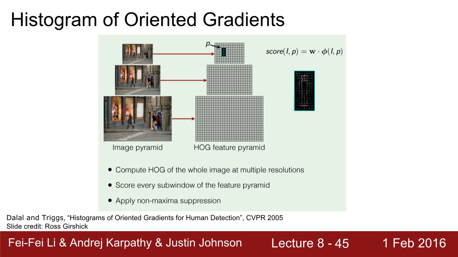 전통적인 방법인 HOG를 보게 되면 image에 대해 linear classification을 하게 된다. 이를 다양한 영역에 대해 진행하게 되고 결과는 매우 잘 동작한다.