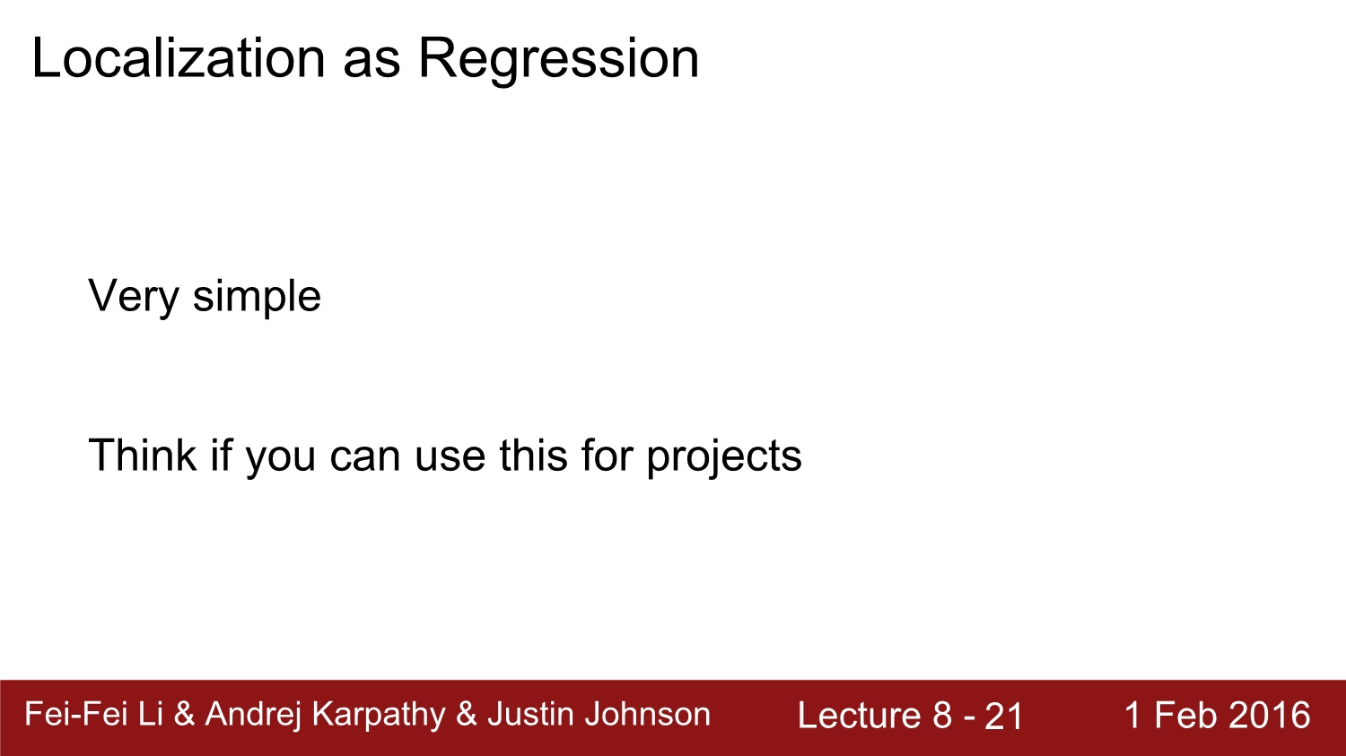 정리하자면 Localization as regression은 매우 간단하고, 여러 프로젝트에서 활용된다.