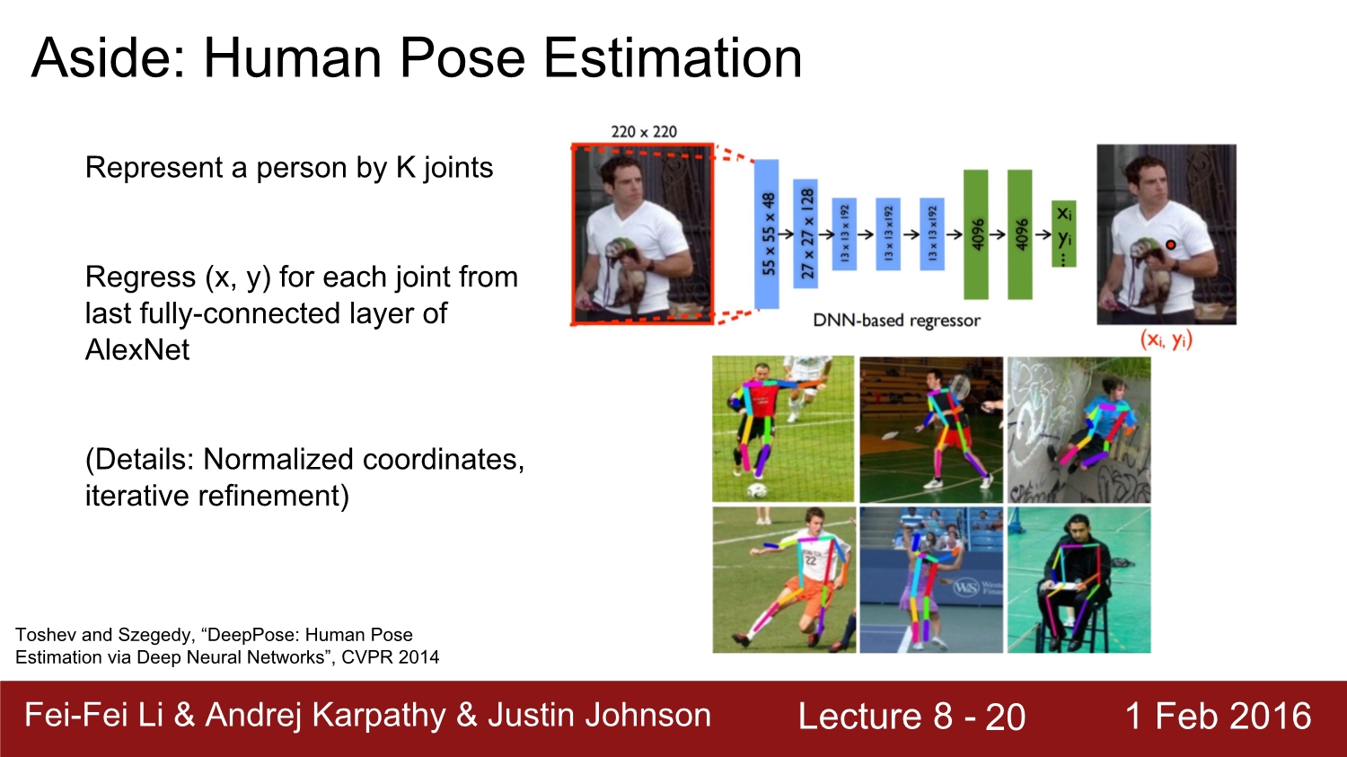 예를 들어 이렇게 사람의 관절을 파악하는 problem도 regression을 통해 잘 구해진다고 한다. 굳이 무거운 detection을 사용하지 않아도 된다.