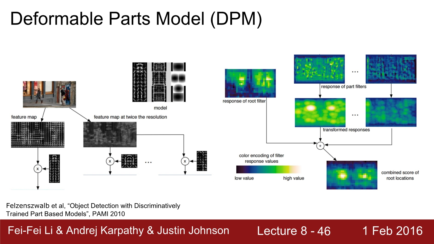HOG에 대한 후속 연구 중 1개가 DPM이다. 여전히 HOG를 기반으로 진행하였고, 특징은 부분 부분에 대한 template을 가지고 진행한다. 이뿐만 아니라 다양한 변형된 형태도 가지고 있다.