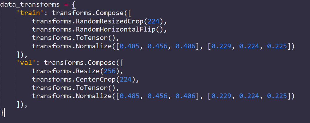 위에서 해당되는 코드는 transforms.RandomResizeCrop(), transforms.RandomHorizontalFlip()이다.