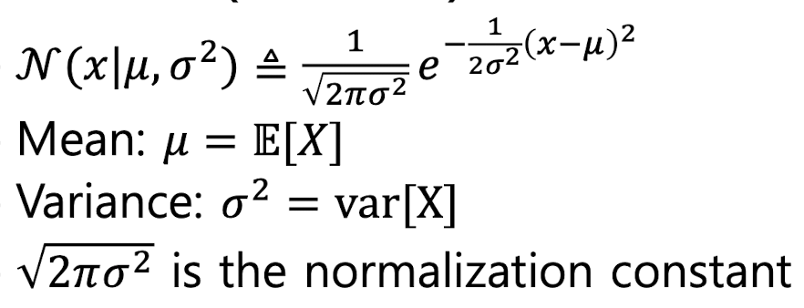 여기서$\sqrt{2\pi \sigma^{2}}$는 noramalization constant로 사용된다.