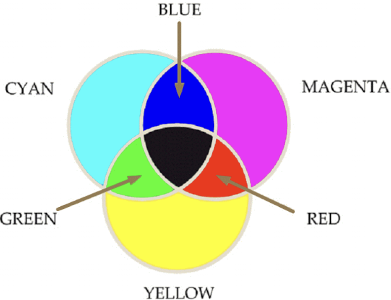 red, green, blue가 기본적인 요소이고, additive model이라고도 부른다. 조명을 base로 하는 모델이다. 이 말은 모니터에서 눈에 들어오는 색들은 모니터가 발산하는 조명 빛에 달려 있다는 말이다.