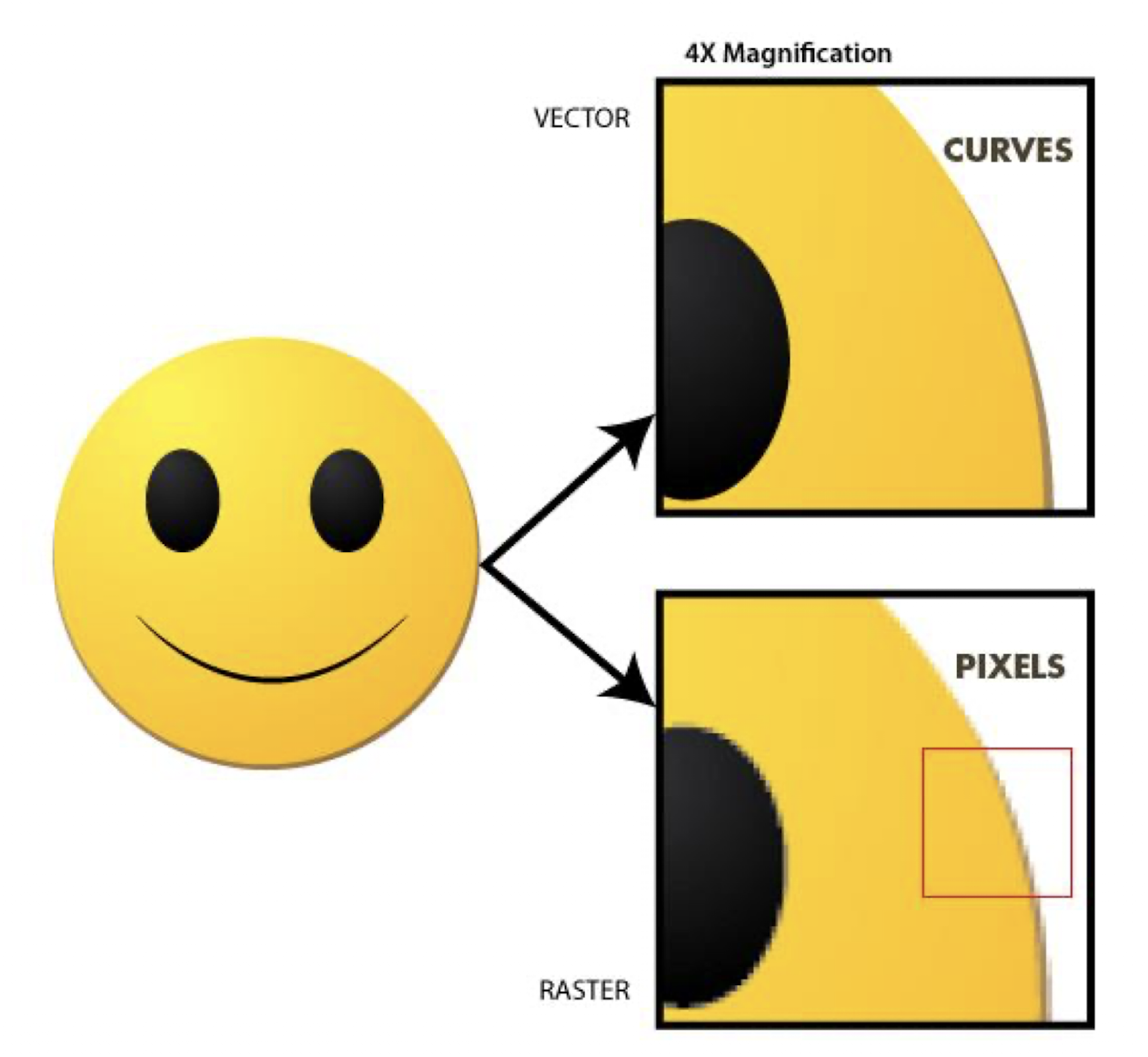 vector와 raster는 다음과 같이 curve에 대해 다르게 나타나고, 그려지는 방법도 다르다.