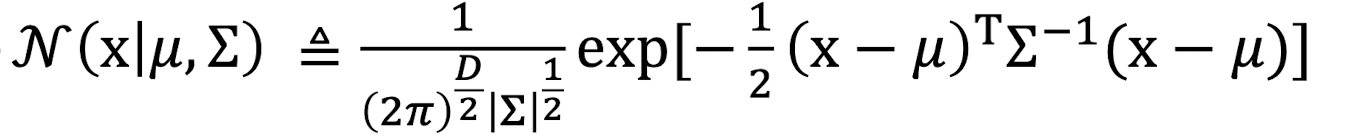 Multivariate이란 다차원이라는 말이다. R.V. $\text{x}$가 다차원일 때 Gaussian distribution은 아래 수식과 같이 구한다. 크게 틀은 달라지지 않는다.