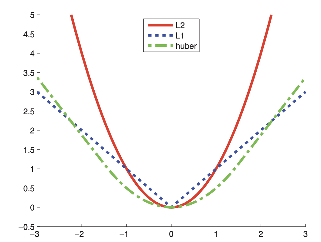 Laplace를 보완하기 위해 Huber loss function이 등장했다. 다음과 같이 정의된다.