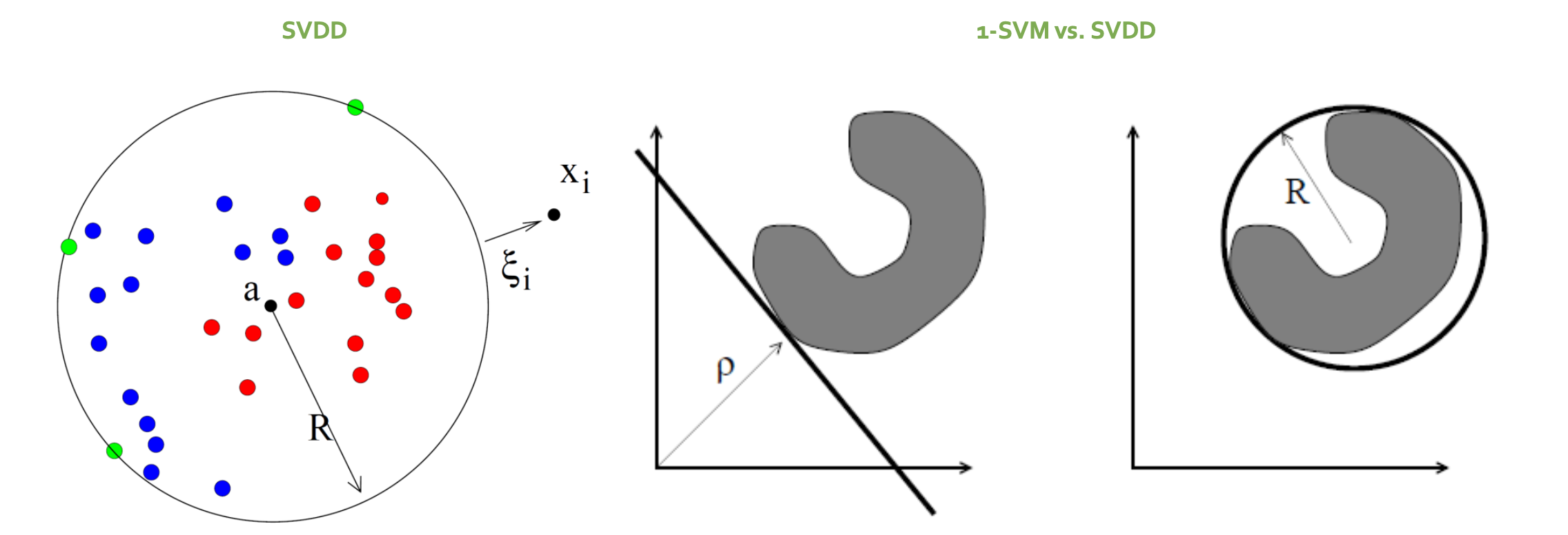 위 그림 오른쪽을 통해 1-SVM과 SVDD의 차이를 볼 수 있다.