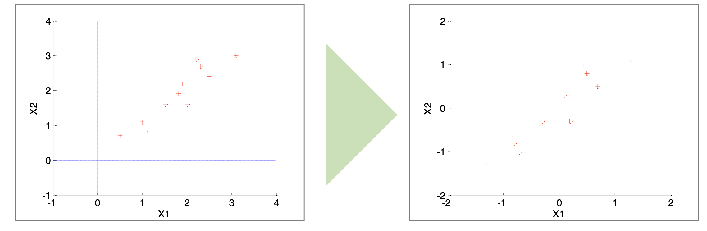 오른쪽 plot이 데이터 센터링에 대한 결과이다.